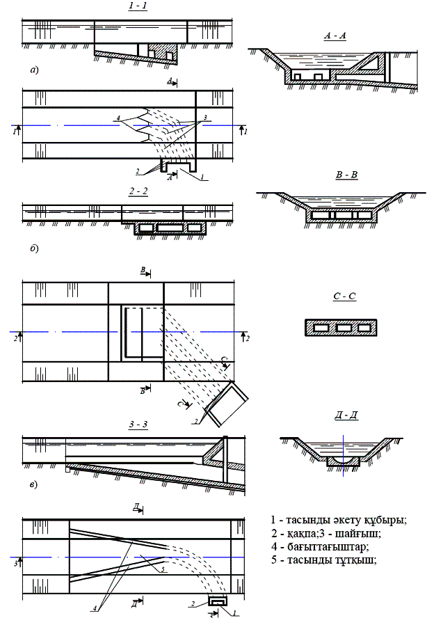 құбыры; 2 – қақпа; 3 – шайғыш; 4 – бағыттағыштар; 5 – тасынды тұтқыш.