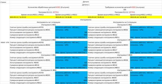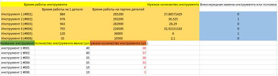 данні про заміну інструменту на кожному верстаті в цеху, та можемо