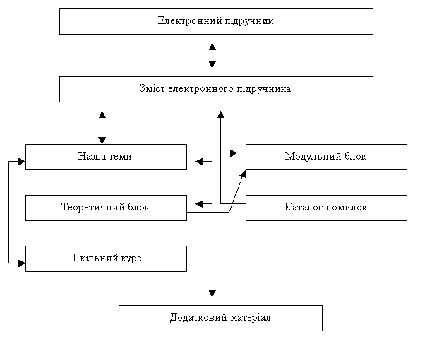 студента. Оптимальну структуру електронного підручника представлено на рис.1.