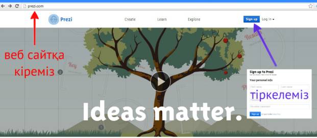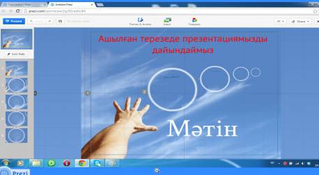 презентацияға Интернет желісінде Prezi.com бағдарламасына