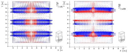 Рисунок 1 - Поле вектора полной скорости в сечении горелок нижнего яруса