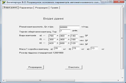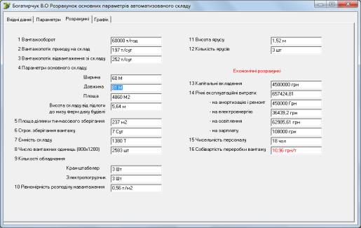 Рис. 3. Розрахунок основних параметрів автоматизованого складу
