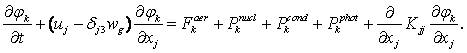 Faer- источники газовых примесей и аэрозолей; Pnucl,Pcond,Pcoag и Pphot – нелинейные операторы нуклеации,