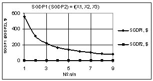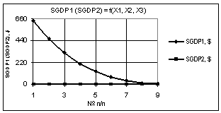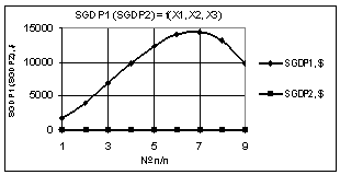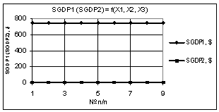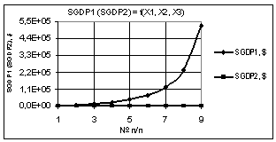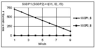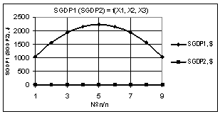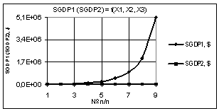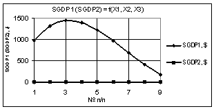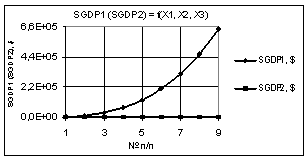 Рис. 6. SΔGDP =f(X1,X2,X3) Х1 = 1…0,1, Х2 = Х3 = 1 |