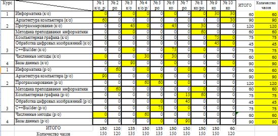 таблицы видно, например, что при распределении дисциплин «Информатика»,