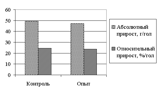 относительный прирост массы тела лабораторных крыс в контрольной и опытной