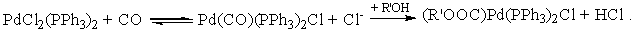 стадий (схема 1), в которой ключевую роль играют Pd-карбалкоксильные интермедиаты PdCOOR1: