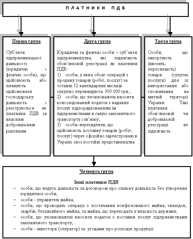 законодавством всіх платників ПДВ поділено на чотири групи (рис. 1). Першу