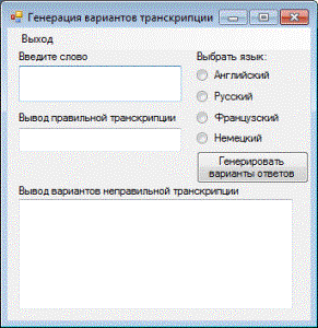 транскрипций. Так же программа должно содержать в себе форму выбора