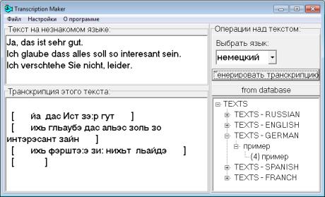 вариантов транскрипций. Рассмотрим интерфейс программы, позволяющий генерировать