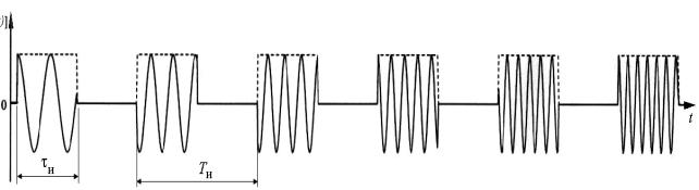 перестройки несущей частоты заполнения стандартных импульсных сигналов, причем