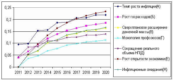 зрештою, призводять до його збільшення. Оцінка взаємовпливу чинників інфляції