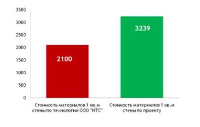 стены по технологии ООО «Эммануил» на 35% ниже стоимости стены по проекту (ж/б