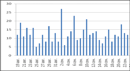 затяжные дожди): 25.08 (5 особей), 3.09 (6 особей).