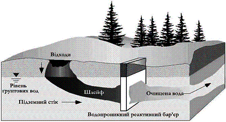 запропоновано використання водопроникних реакційних бар’єрів (ВРБ).