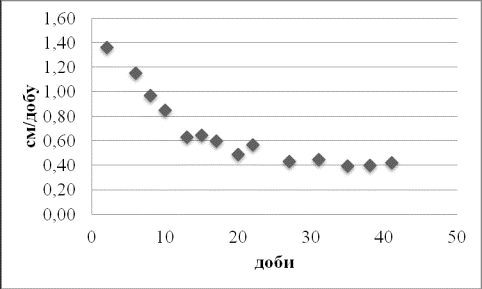 стабілізується після 22 доби на рівні 0,49-0,42 см на добу.
