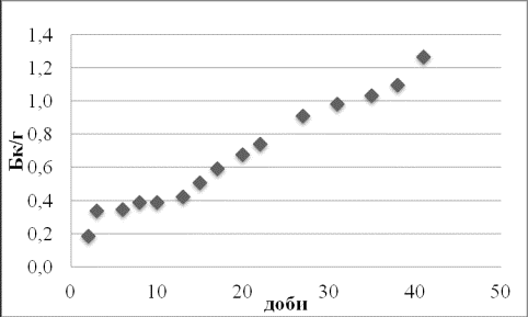 (Бк/г). За час експерименту, що дорівнював близько 41 добу, відбувалось близьке