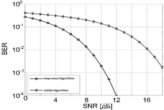 від SNR для систем з використанням існуючого та удосконаленого алгоритму