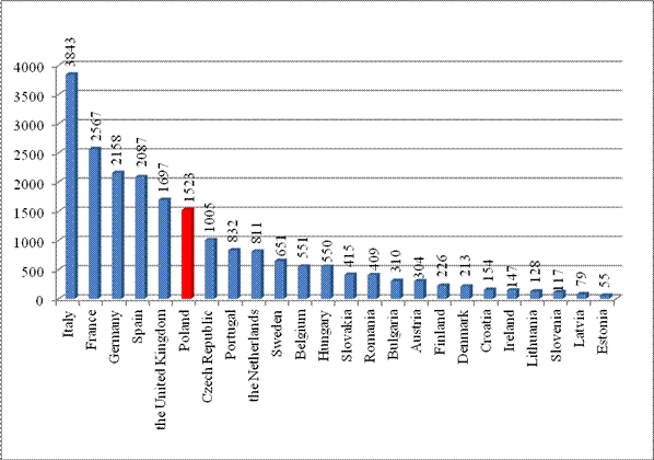 In 2011, Poland in terms of number of enterprises was sixth out of 24 EU countries - and got a result of 1,523 entities. However, Italy has proven to be the leader of the classification (2.5 times more companies than in Poland), while the least well in this respect did Estonia where, in the audited year, there were only 55,000 functioning economic entities.
