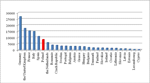 Polish companies won a high sixth place in terms of the number of employed in enterprises persons in 2012. However, in this indicator undeniable winner was Germany, followed by the British, the Italians and the French. The worst in this ranking were the following countries: Estonia, Luxembourg and Cyprus.