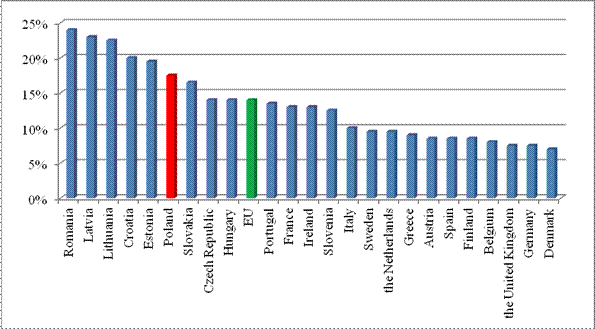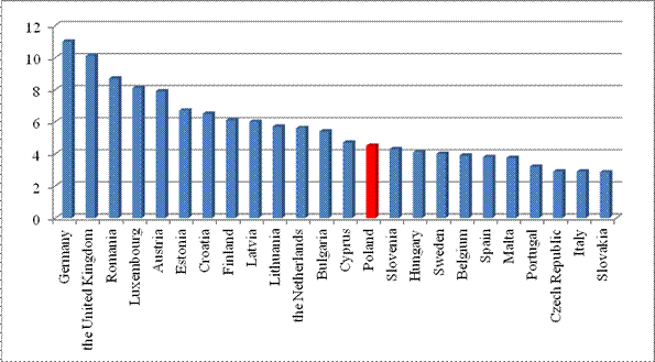countries (47.8 %). Poland compared to selected EU countries in this regard was