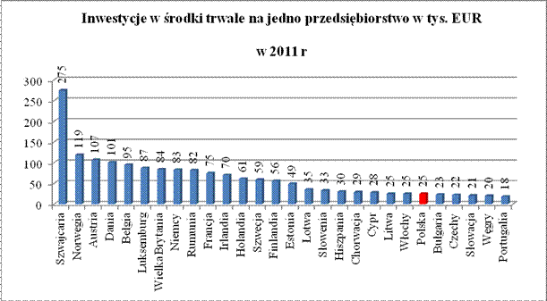 Poland, in terms of investments in fixed assets in 2011, also did unfavorably against EU competitors - position in third top ten of the classification, which does not bode a positive future perspective in this regard.