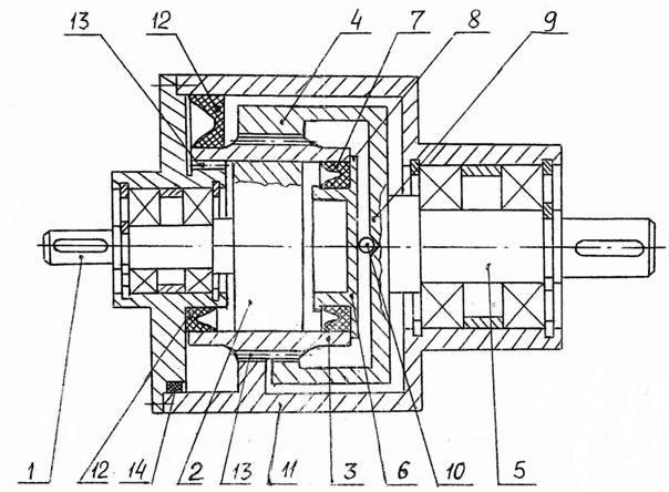 муфтового з'єднання 13 пов'язане з корпусом 11. Манжети 7, 12 встановлені
