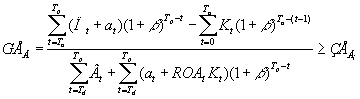 чиннику часу чистого інтегрального прибутку і інвестицій, виглядає таким чином: