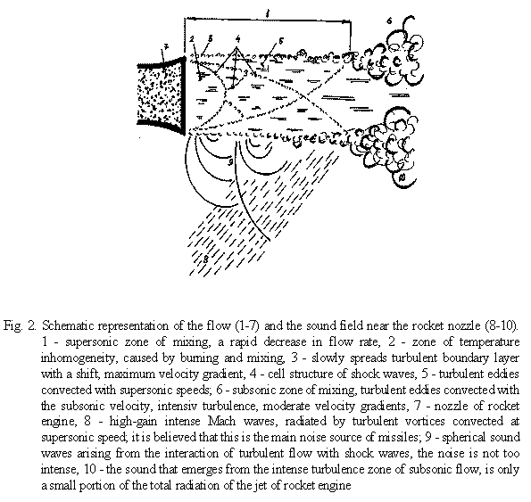 On the rocket there are two major changes in the sound field. Near the nozzle exit sound is most intense and decreases