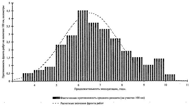 подвергнутых среднему ремонту, незначительно и колеблется в пределах до 15% от общей протяженности.