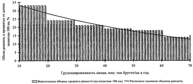 объема выполнения ремонта с увеличением уровня грузонапряженности (рис. 2).