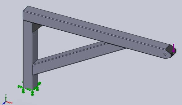 аналізі кран-балки навантажувача в SolidWorks, з відповідними значеннями цих