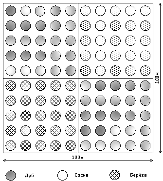 Рисунок 1 – Схема дубово-сосново-берёзовой квадрогруппы