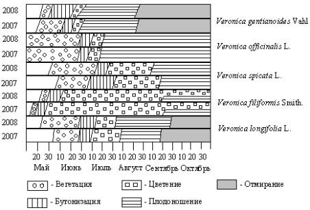 Рис. Феноспектр видов рода Veronica L. в условиях интродукции