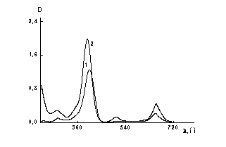 кривая 1)). При этом сдвига максимумов поглощения не наблюдается (рис.2). Это свидетельствует о том, что