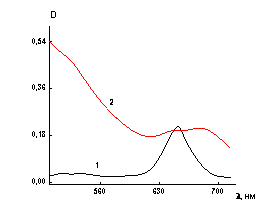 (λmax = 640 нм) - гипсохромный сдвиг,