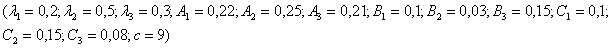 Параметры модели примем такими же, как