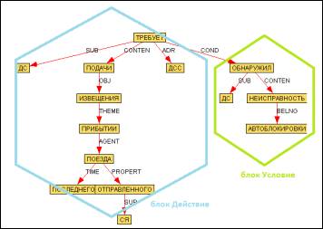 SUB(Обнаружить,ДС)˄CONTENT(Обнаружить,Неисправность)˄BELGN(Неисправность,Автоблокировка) ⊃ SUB(Требовать,ДС)˄ADR(Требовать,ДСС)˄CONTEN(Требовать,