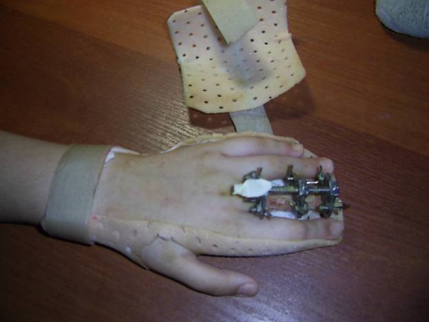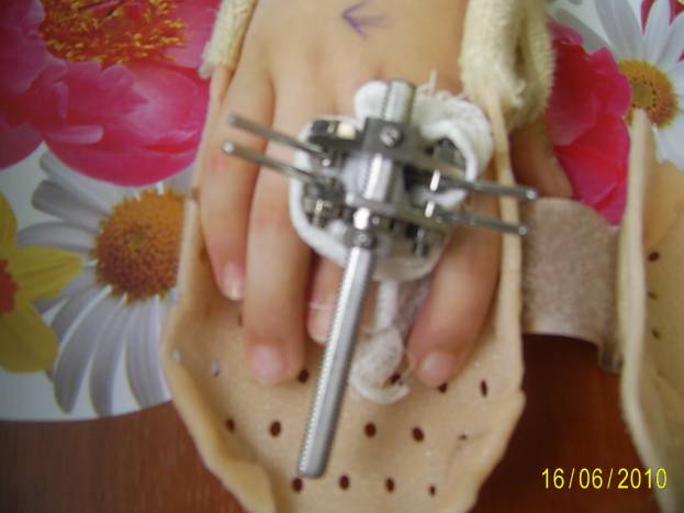 Костно-дистракционный аппарат проксимальной фаланги 3 пальца.