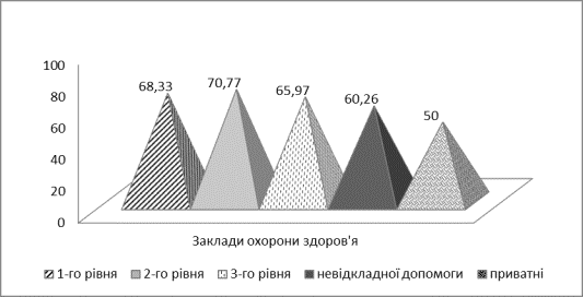 охорони здоров’я (71,79 ± 1,89 %), трохи нижча у лікарів