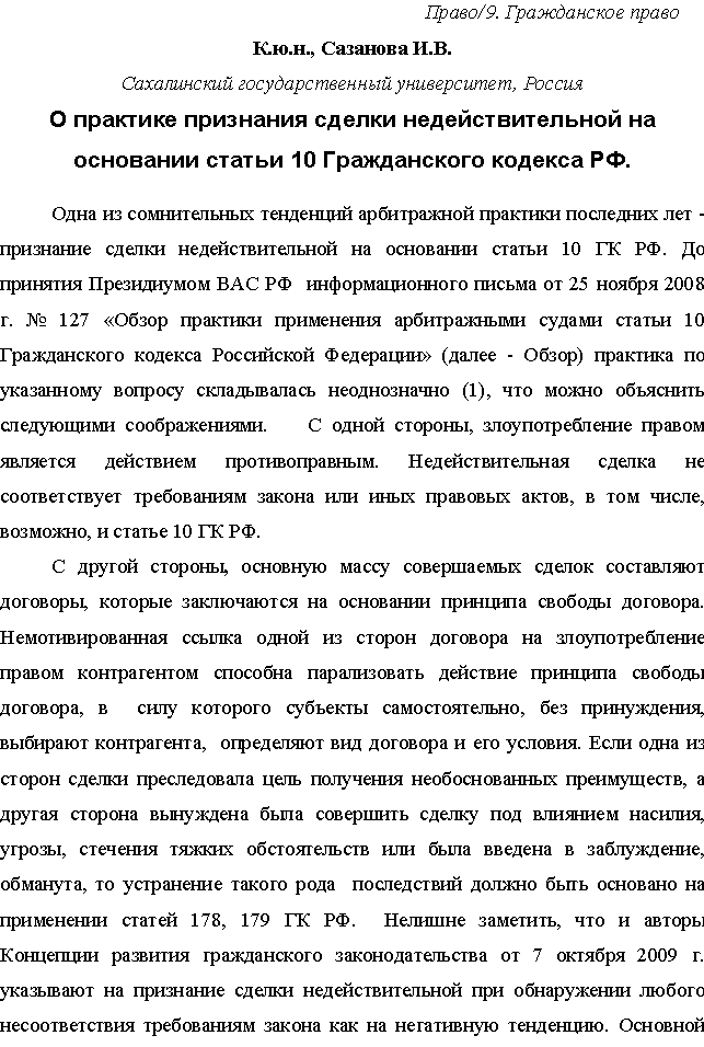 статьи 10 ГК РФ для аннулирования сделок не может не вызывать сомнений.