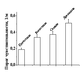 чувствительности ниже для цветочных и древесных ароматов по сравнению с лицами