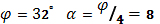 при вершине (где φ – угол внутреннего