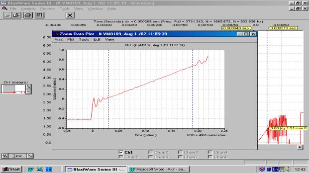 детонации использовалась аппаратура: «VOD Mate» («Instantel») и «HandyTrap» («MREL»), непрерывно