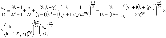 реакция происходит в форме поверхностного горения частиц ВВ, взаимодействующих с потоком газа.