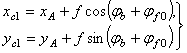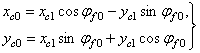 Переходя в основную систему координат XО1Y, т. е. выполняя поворот осей координат на угол φf0, находим
