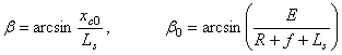 β, β0 – текущий угол наклона шатуна CD и угол наклона шатуна в крайнем нижнем положении