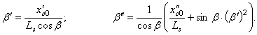 Производные угла β определяются после дифференцирования первого выражения (5)