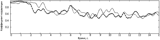 интервале 15 с (сплошной линией обозначена КФ ОХ ВО от первой РЛС,