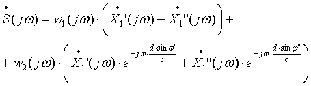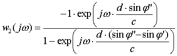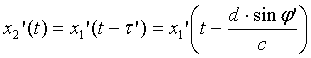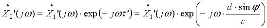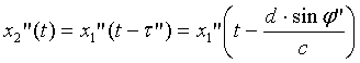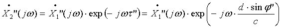 соответствующих сигналов на выходе первого микрофона на величины τ’ и τ”, которые можно рассчитать по аналогии с (1).